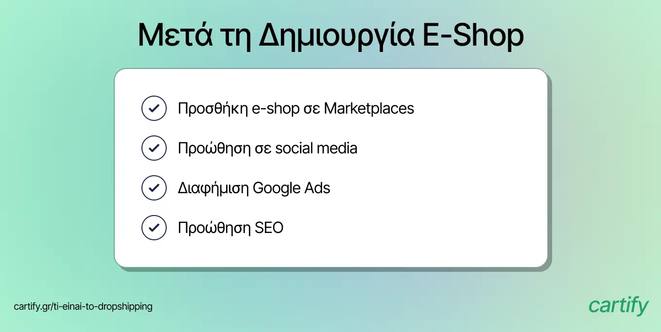 Το dropshipping είναι μια περίπτωση όπου δεν είναι απαραίτητο να βρείτε δικό σας χώρο. Στην περίπτωση αυτή, αποστέλλετε τα προϊόντα απευθείας από τους προμηθευτές σας στους πελάτες σας.