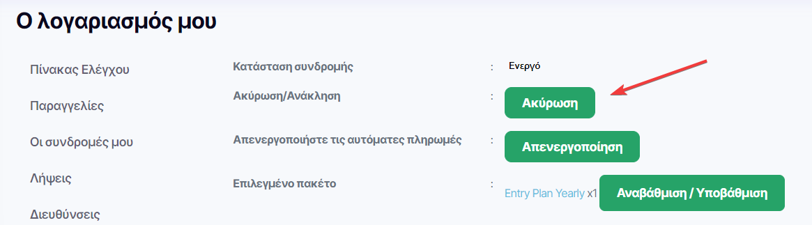 4. Στις ρυθμίσεις της συνδρομής, κάντε κλικ στο κουμπί “Ακύρωση”.