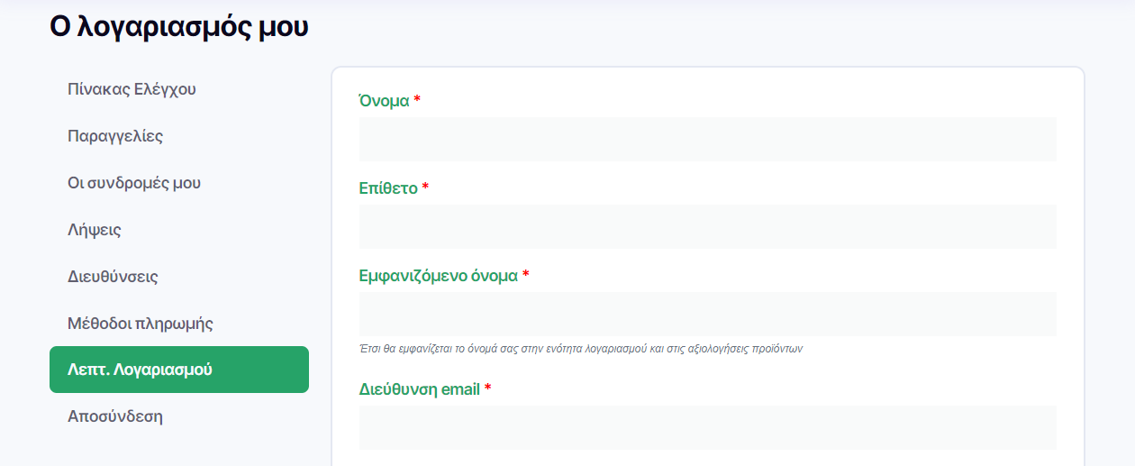 Μπορείτε να τροποποιήσετε τα στοιχεία του λογαριασμού σας ανά πάσα στιγμή.
