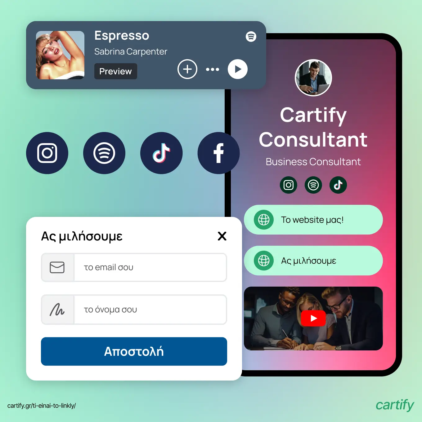 Γνωρίστε το Linkly- μια πλατφόρμα από την Cartify, σχεδιασμένη ειδικά για επιχειρήσεις που βασίζονται στα social media και θέλουν να ενισχύσουν το brand τους και να επεκτείνουν τη δραστηριότητά τους στα κοινωνικά δίκτυα.